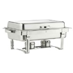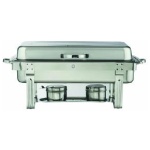 Chafing Dishset is de ideale oplossing voor het warmhouden en serveren van gerechten bij buffetten en evenementen. De set bestaat uit een robuuste roestvrijstalen frame met afneembare deksel, waarbij de frames stapelbaar zijn voor eenvoudig gebruik en ruimtebesparende opslag. De set bevat twee een frame, 2 brandstofhouders, een deksel, een waterbak, één GN 1/1 voedselbak (diepte 65 mm) met een inhoud van 9 liter, twee GN 1/2 voedselbakken (diepte 65 mm) met elk een inhoud van 4 liter, en drie GN 1/3 voedselbakken (diepte 65 mm) met elk een inhoud van 2.5 liter. Gemaakt van hoogwaardig roestvrij staal van de types 200, 300 en 400, biedt deze chafing dish set duurzaamheid en eenvoudig onderhoud. De rechthoekige, stevige deksel is afneembaar voor extra gebruiksgemak, terwijl de ruime water- en voedselbakken veel capaciteit bieden. Met een totale afmeting van 35.5 x 59.5 x 30 cm (B x D x H) past dit set perfect in uiteenlopende buffetopstellingen en is het ideaal voor professioneel gebruik in de horeca.