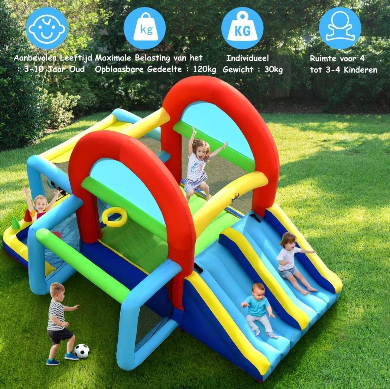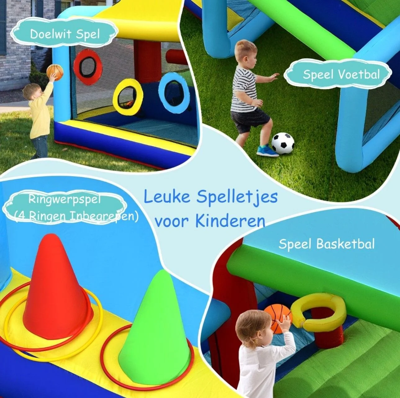 - Duidelijke uitleg bij het plaatsen van het kussen zodat u exact weet wat de regels m.b.t. het springkussen zijn.